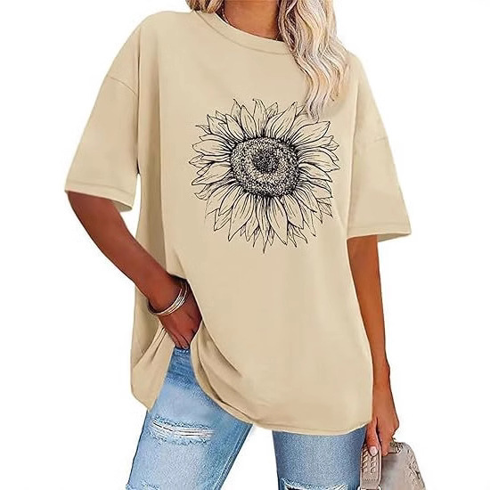 Women's Sunflower Print Oversized Short Sleeve T-Shirt