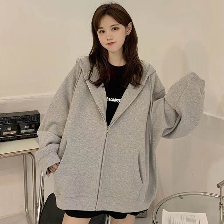 This hoodie is made of heavyweight cotton blend fabric, which is thick and soft, moderately warm, breathable and comfortable, and durable against washing and deformation. The classic hooded design with drawstrings allows free adjustment of the hood shape, windproof and casual. The full-zip placket is convenient to put on and take off, and can be half-open or fully open, adapting to various wearing styles. The oversized dropped-shoulder silhouette with large pockets suits all body types, lazy and casual, and is friendly to all figures. The minimalist solid color design makes it a versatile item for daily casual, campus wear and street style in spring and autumn.