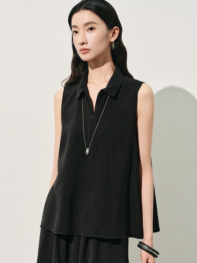 This sleeveless shirt is made of textured blended fabric, which is dry, breathable, structured and wrinkle-resistant. It features a classic lapel with a half-zip placket for a neat and adjustable neckline. The loose fit is flattering for all body types. Simple and stylish, it can be worn alone or layered, perfect for daily commuting and casual occasions.