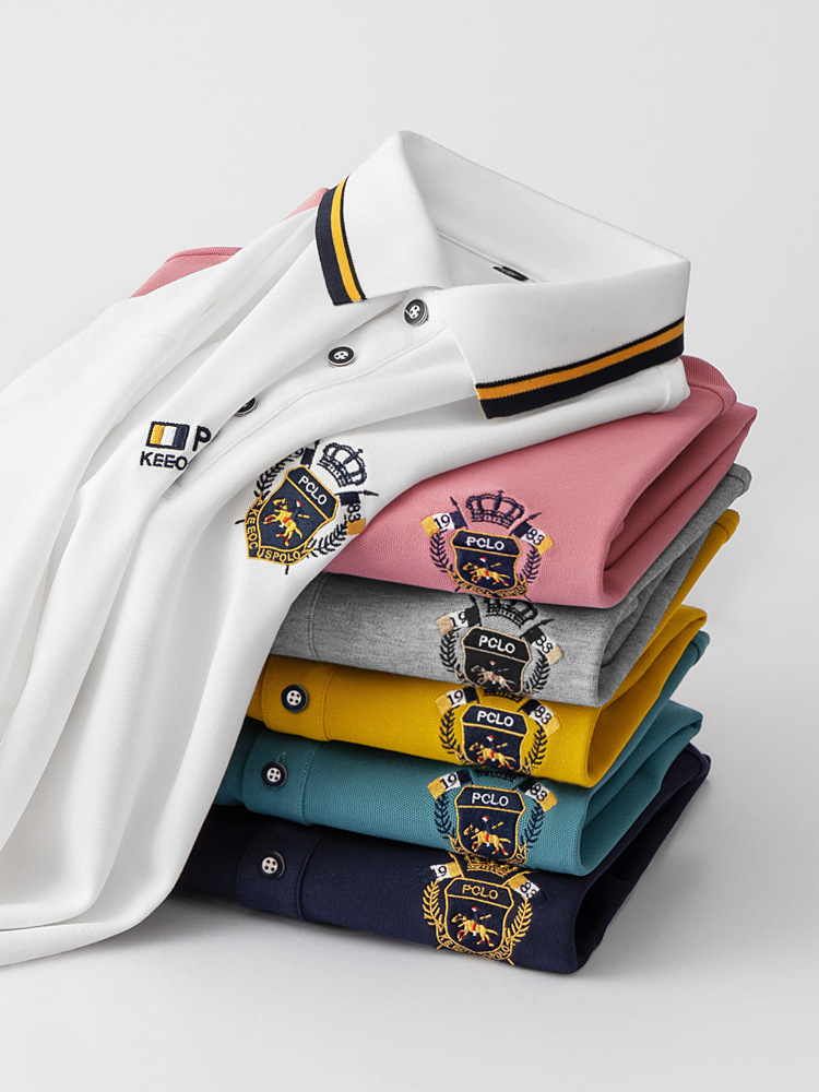 Contrast Trim Embroidered Badge Business Casual Polo Shirt