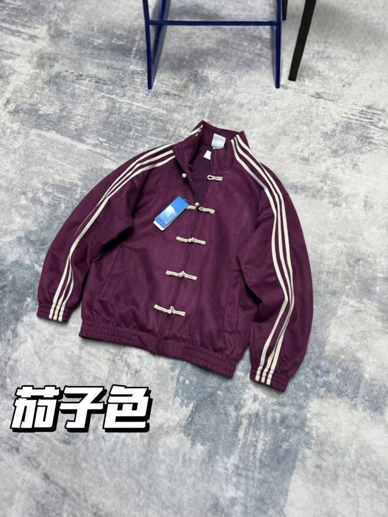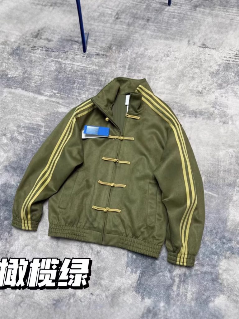 This jacket blends New Chinese style knot buttons with sporty stripe elements. The stand collar + half-zip placket paired with handcrafted knot buttons combines Eastern charm with street fashion. The classic three white stripes on the sides and sleeves elongate the silhouette, creating a retro and trendy look.