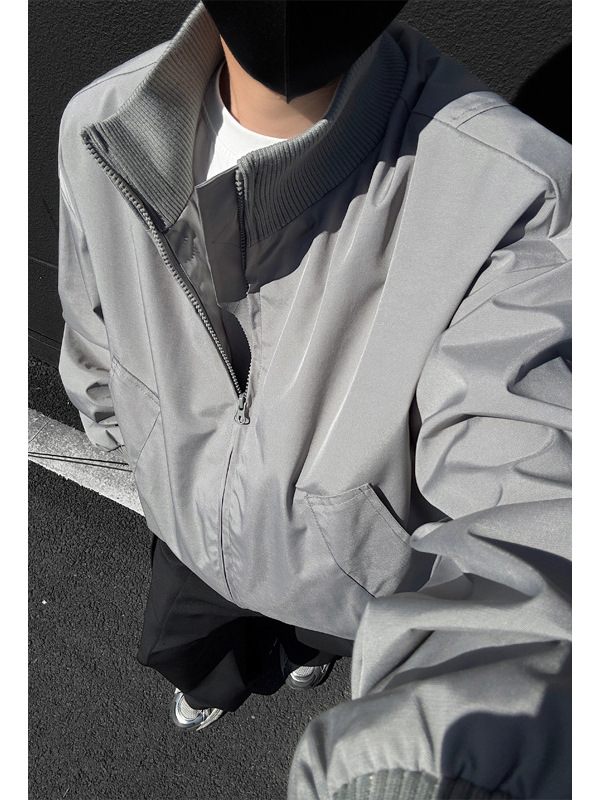 这款飞行员夹克采用简约工装风设计,立领 + 全拉链开合,兼具防风功能与利落造型感。面料为挺括的梭织面料,不易皱且有一定防水性,适合多场景穿着。落肩宽松廓形,对各种身形包容度高,搭配罗纹袖口与下摆,提升穿着贴合度与保暖性。两侧对称插袋设计,兼顾实用性与视觉整洁感,是日常通勤、街头穿搭的百搭单品。