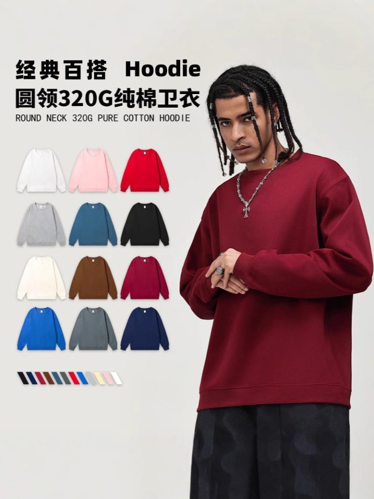 Classic Versatile 320G Pure Cotton Crew Neck Sweatshirt