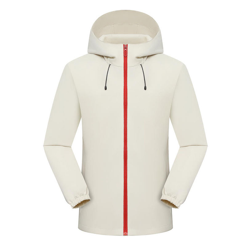This outdoor jacket features a hooded design with adjustable drawstrings on the brim to effectively block wind and rain. The full-zip closure with a smooth zipper head ensures easy wearing and taking off. The fabric is windproof and waterproof, with a dense surface texture that resists light rain and strong winds, making it suitable for outdoor activities such as hiking and trekking. The cuffs adopt an elastic ruffled design to prevent cold wind from entering; the simple and neat body has no extra decorations, combining practicality and minimalist aesthetic. The unisex fit is moderately loose and can be layered with warm clothing, suitable for spring, autumn and early winter.