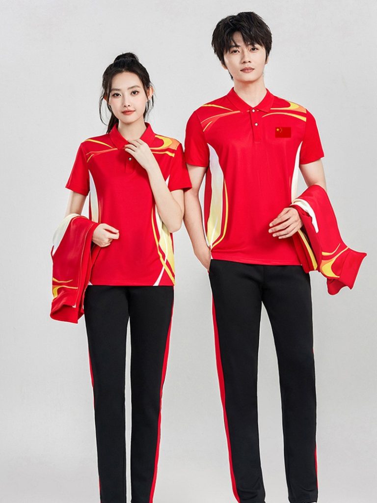 CHN National Flag Sports Set (Short-Sleeve Polo + Long Pants)